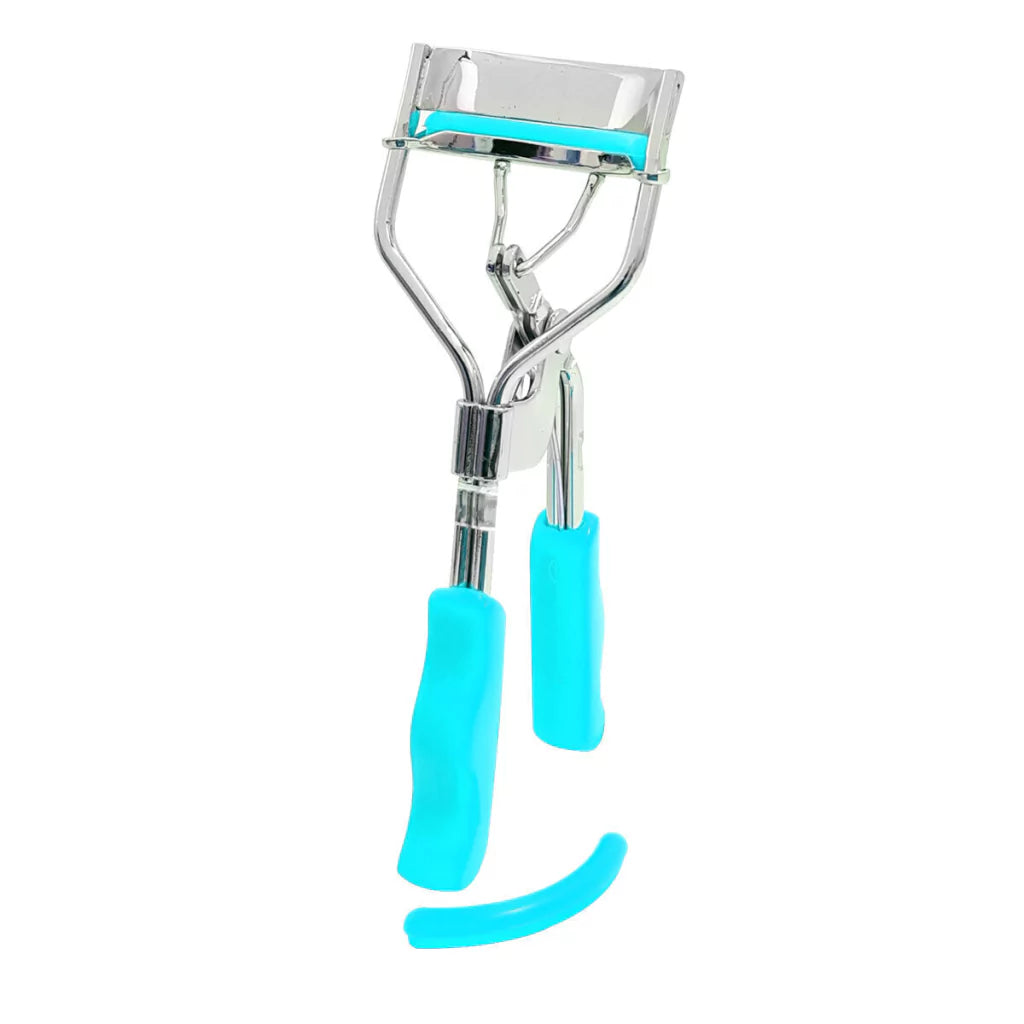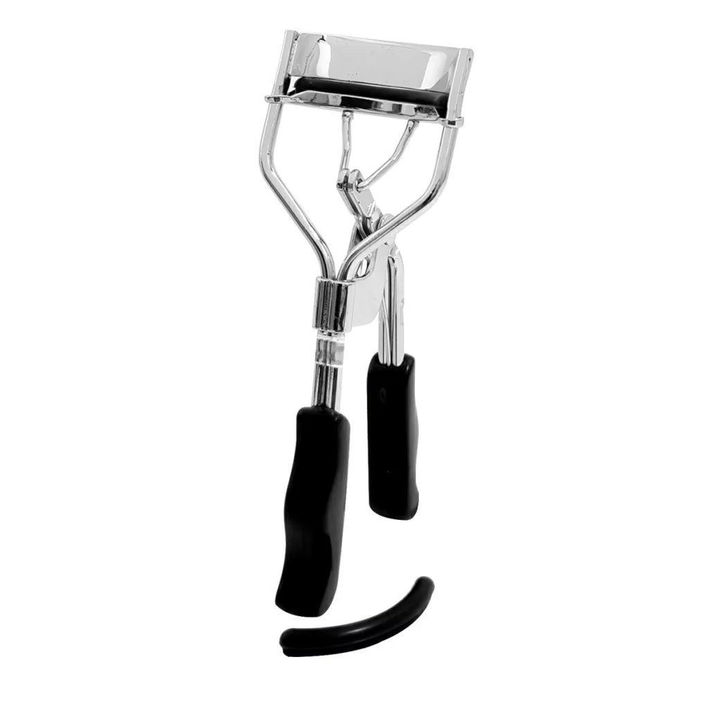 Enchinador para pestañas metálico con 2 repuestos de silicón.